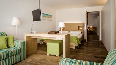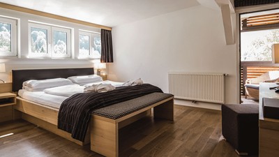 inkl. Familienbonus 2 Kinder bis 13 Jahre schlafen im Zimmer der Eltern in den Zimmerkat. Bergblicksuite gratis