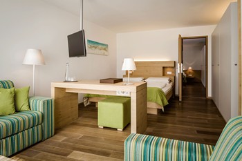 inkl. Familienbonus 2 Kinder bis 13 Jahre schlafen im Zimmer der Eltern in den Zimmerkat. Bergblicksuite gratis